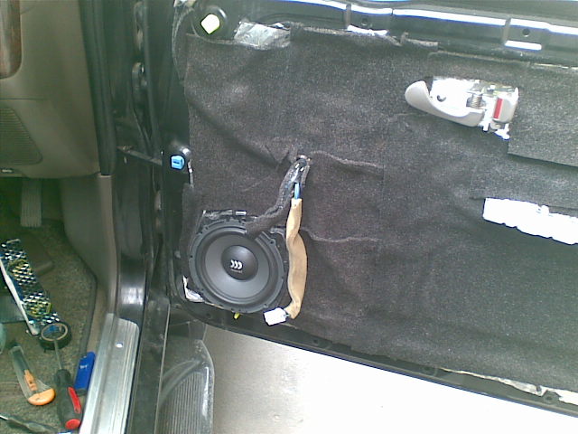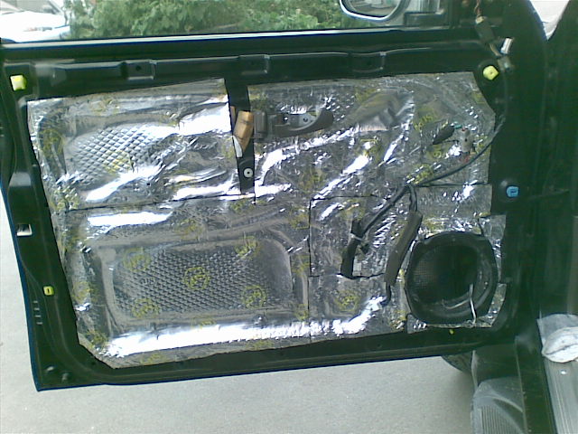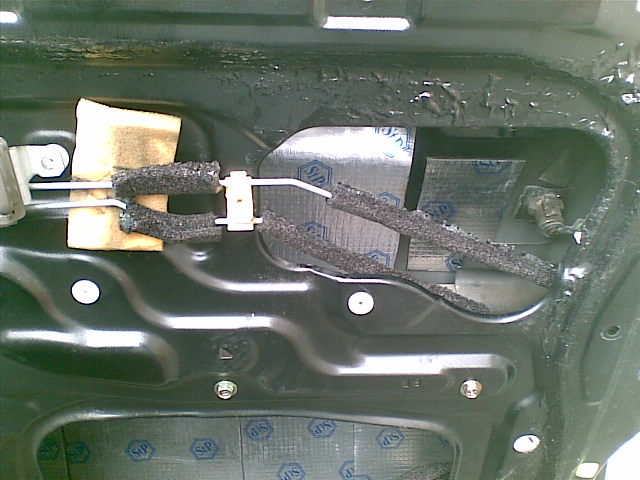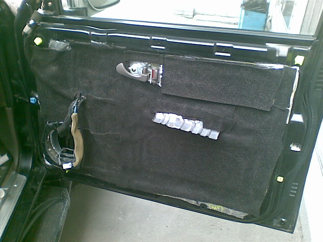 Далее закатал поролоном на клюющей основе, он во первых шумо подавляющий, а во вторых не дает скрипеть пластиковой обшивке двери, в местах соприкосновения.