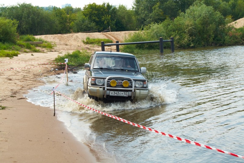 паджеро 3.5 покоряет лужу.